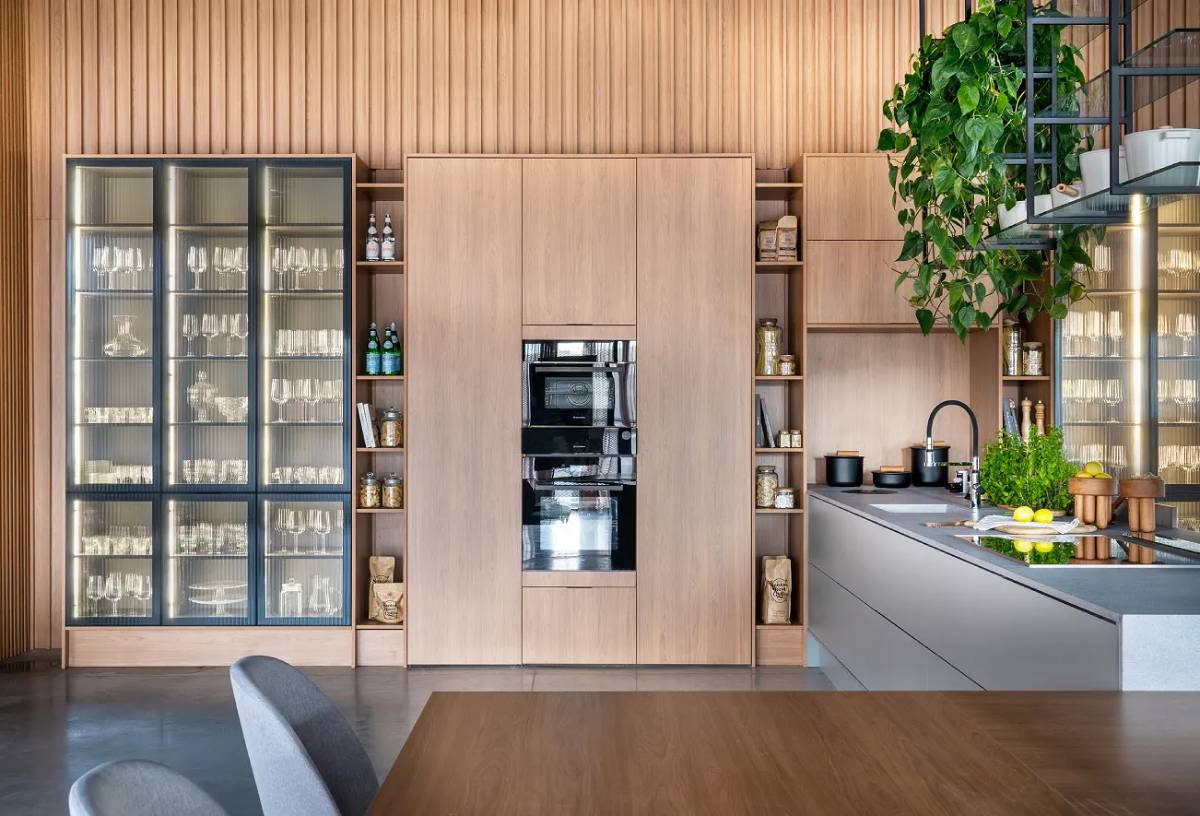 É tendência a composição de espaços abertos e integrados, que criem uma cozinha mais aconchegante e favoreçam a interação entre as pessoas. Portanto, deixe para trás aquela ideia de ter uma ilha gigante ou bancadas enormes, pois a procura atual é por cozinhas sob medida, que possibilitem a fluidez e devolvam a sensação de acolhimento e conforto ao ambiente. Uma ideia é apostar no uso de prateleiras estilizadas, no lugar de armários superiores fechados, e em ilhas orgânicas, com os cantos arredondados.