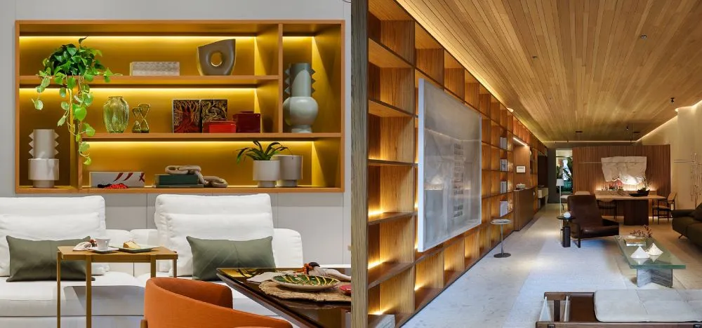 Além dessas soluções, existem aparadores e buffets que, servem como suporte para objetos decorativos, também são ideais para expor obras de arte, seja apoiando esculturas, cerâmicas ou servindo como base para quadros.