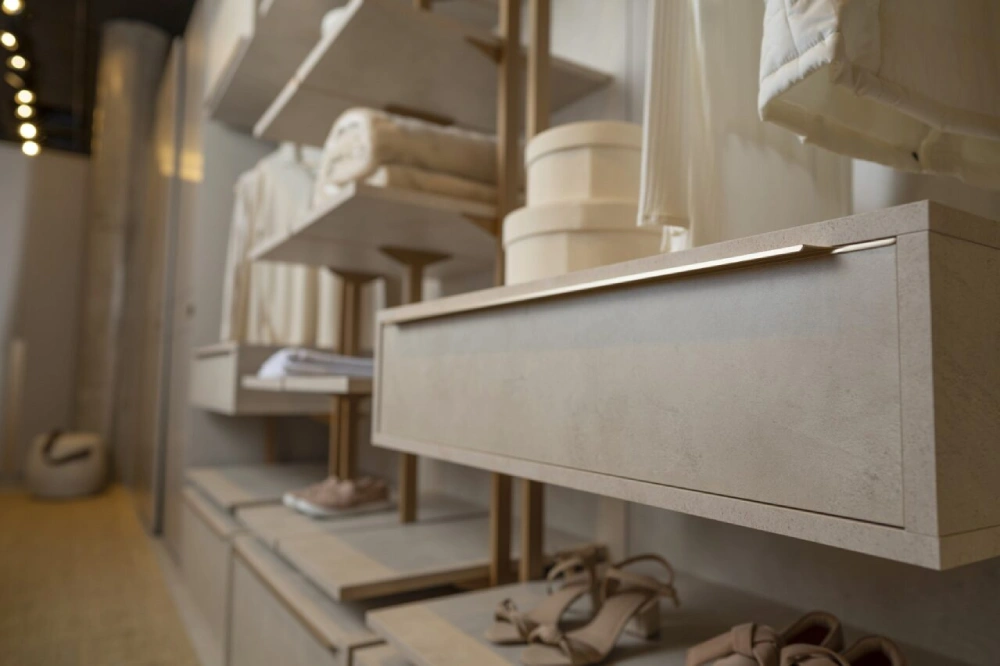 A Criare está sempre atenta às últimas tendências em design de interiores, e nossos closets abertos não são exceção. Em 2024, as cores neutras como branco, cinza e bege continuam em alta, mas cores mais ousadas como verde musgo, azul petróleo e a cor Panetone 2024 ‘Peach Fuzz’ também ganham espaço. Acabamentos foscos e texturizados estão em alta, assim como a integração de tecnologias como iluminação LED com sensor de presença e sistemas de abertura automática de gavetas.