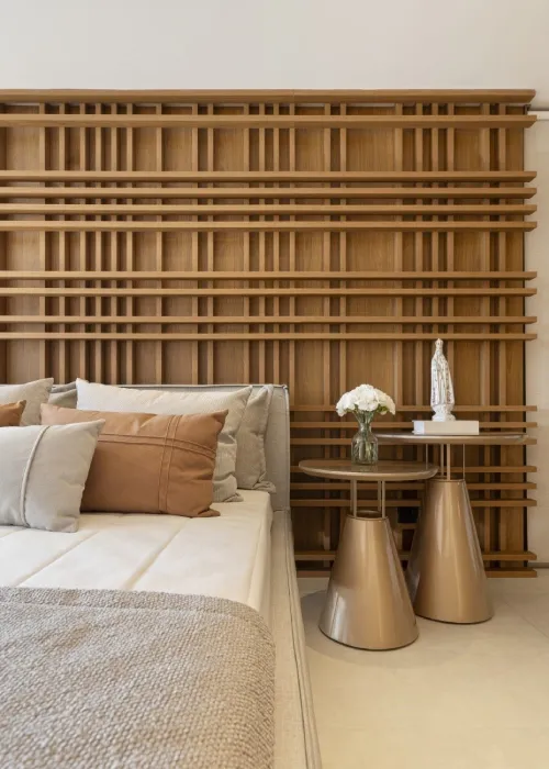Diferentes formas de personalização ajudam a entregar um quarto perfeito para as preferências do casal.